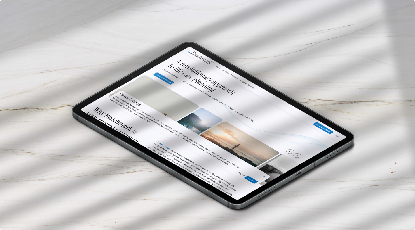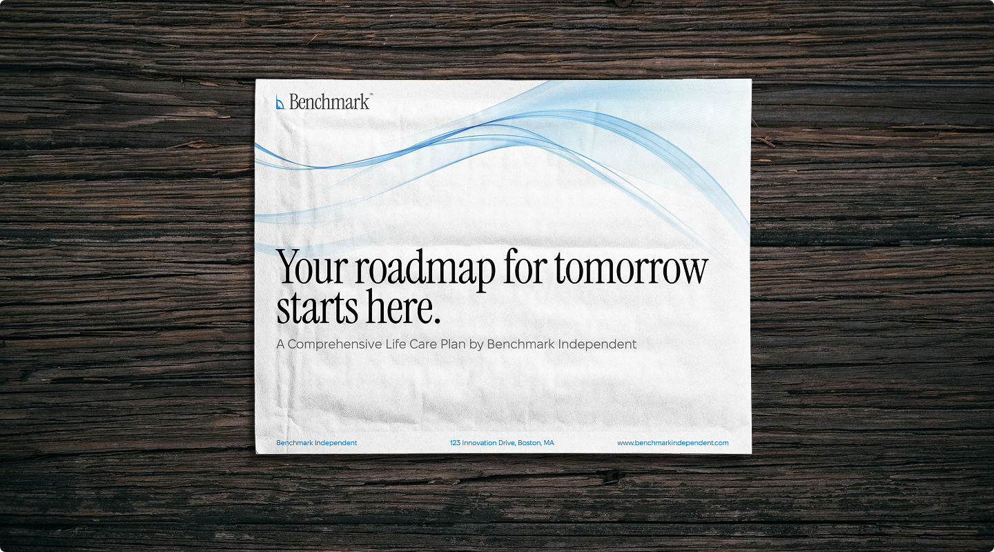 Life care planning sits at the intersection of healthcare, legal, and financial services — and clients arrive already overwhelmed. They're often in the middle of a health crisis, facing decisions about a family member's long-term care, navigating systems they don't understand. The brand Benchmark needed had to do something genuinely difficult: project authority and expertise while making people feel less afraid, not more.